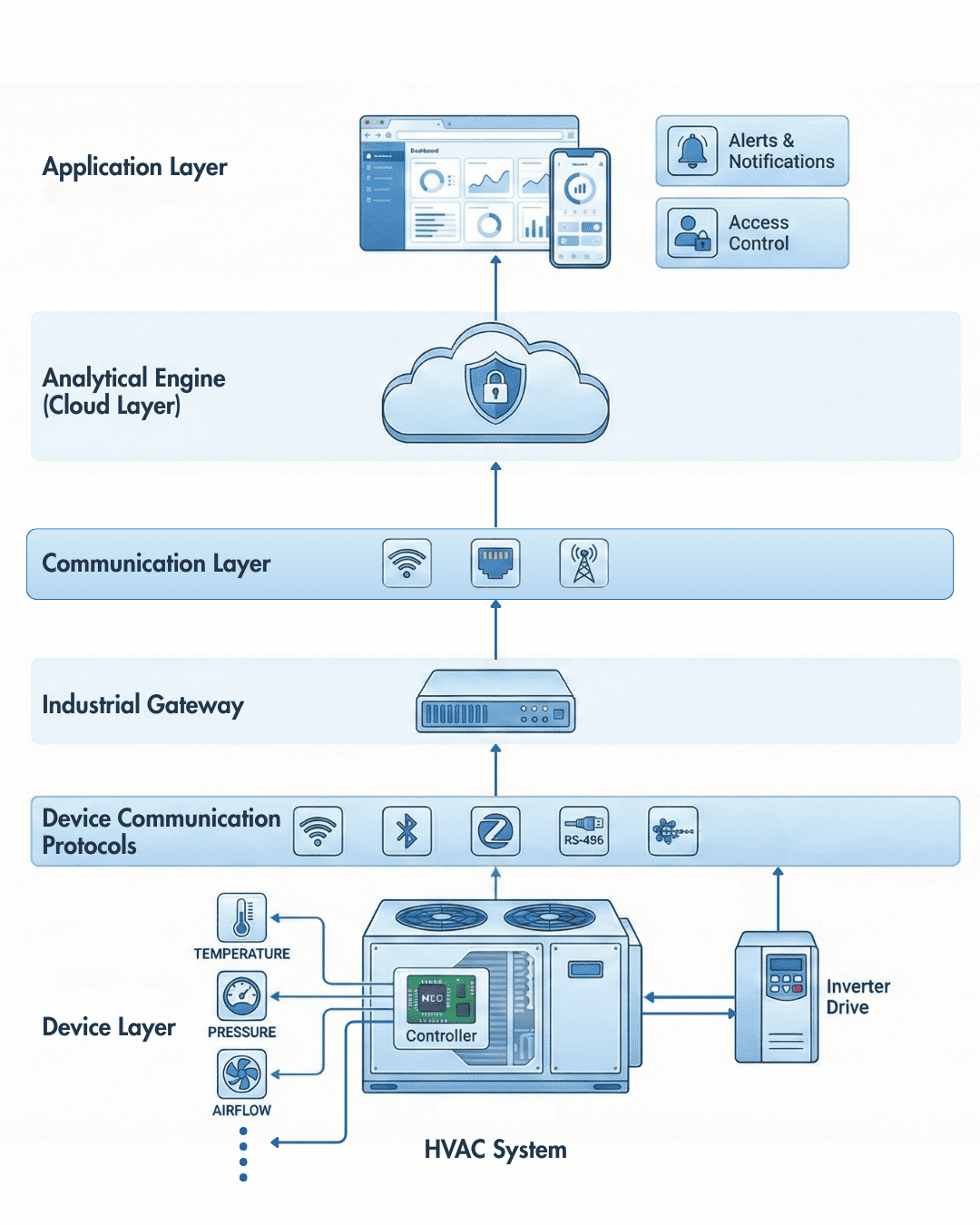 Smart HVAC systems are built on a multi-layered technology stack that integrates hardware, software, and connectivity.
